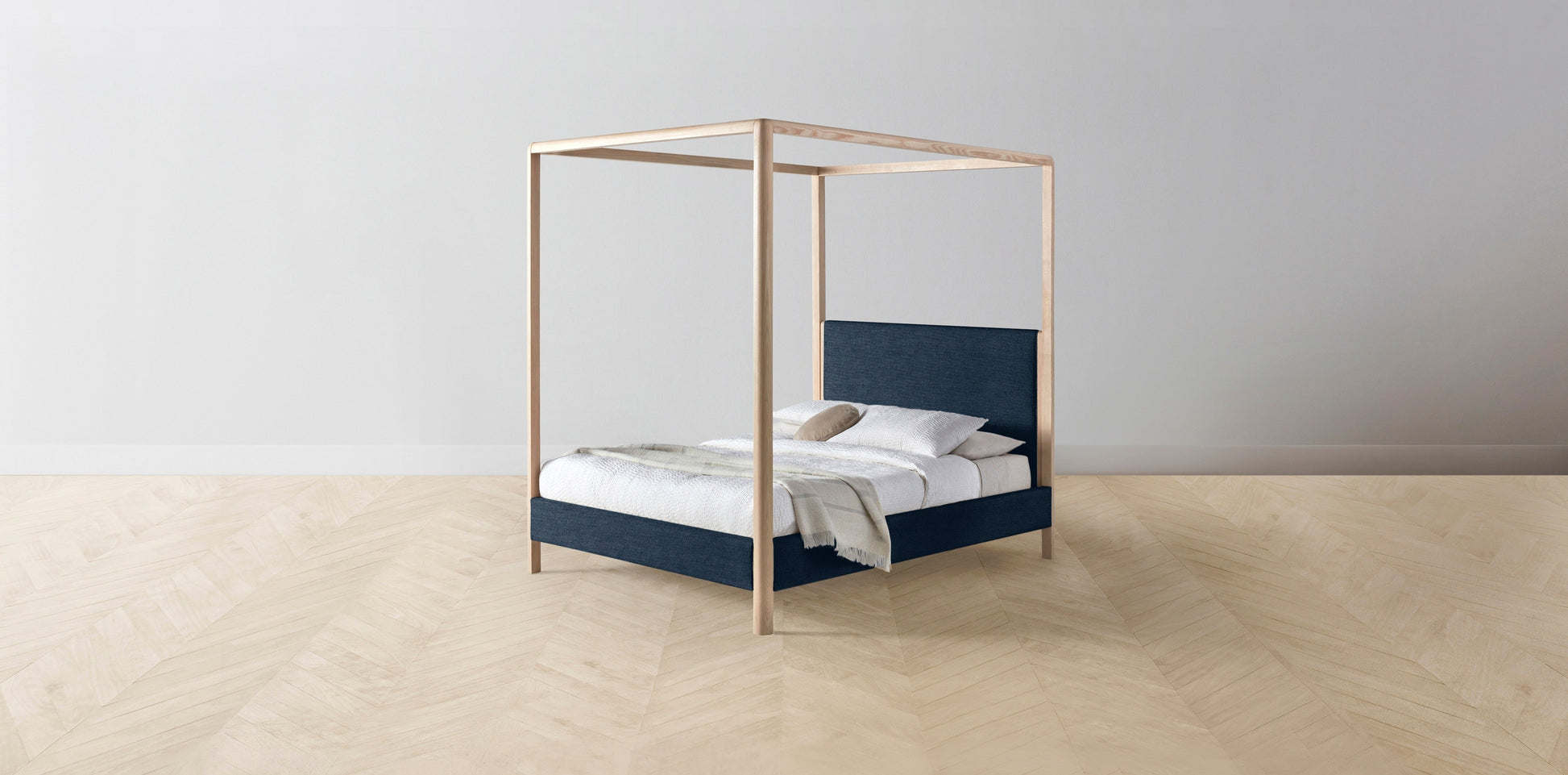 The Thompson - Performance Textured Linen Seaside Canopy Bed - 48" Headboard - Muslin on reverse