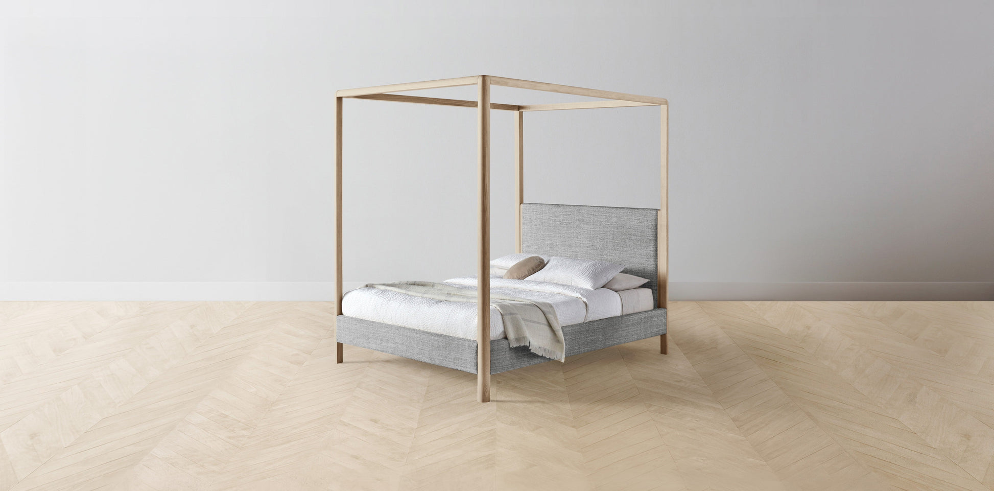 The Thompson - Performance Textured Tweed Alpine Canopy Bed - 48" Headboard - Muslin on reverse