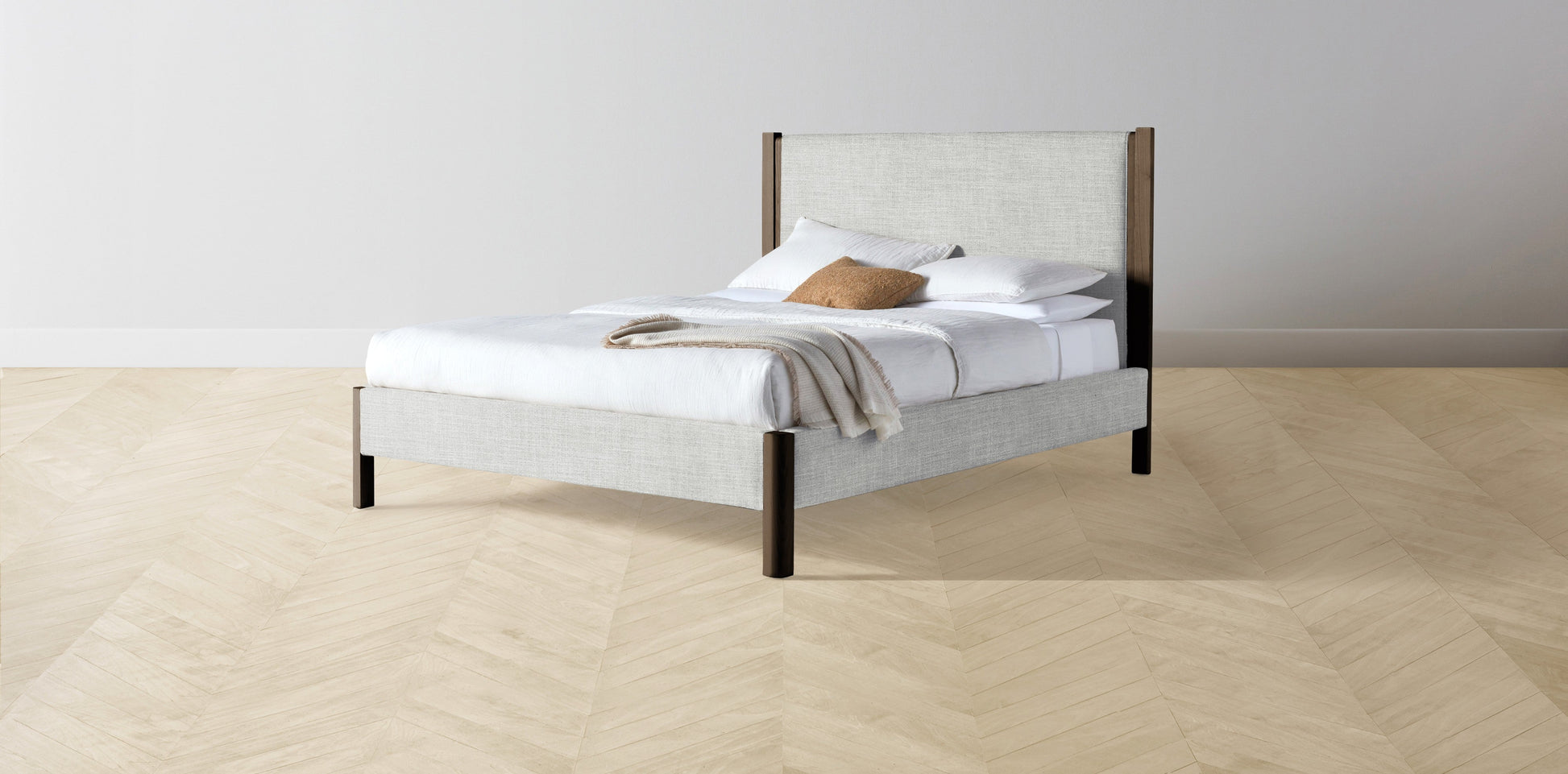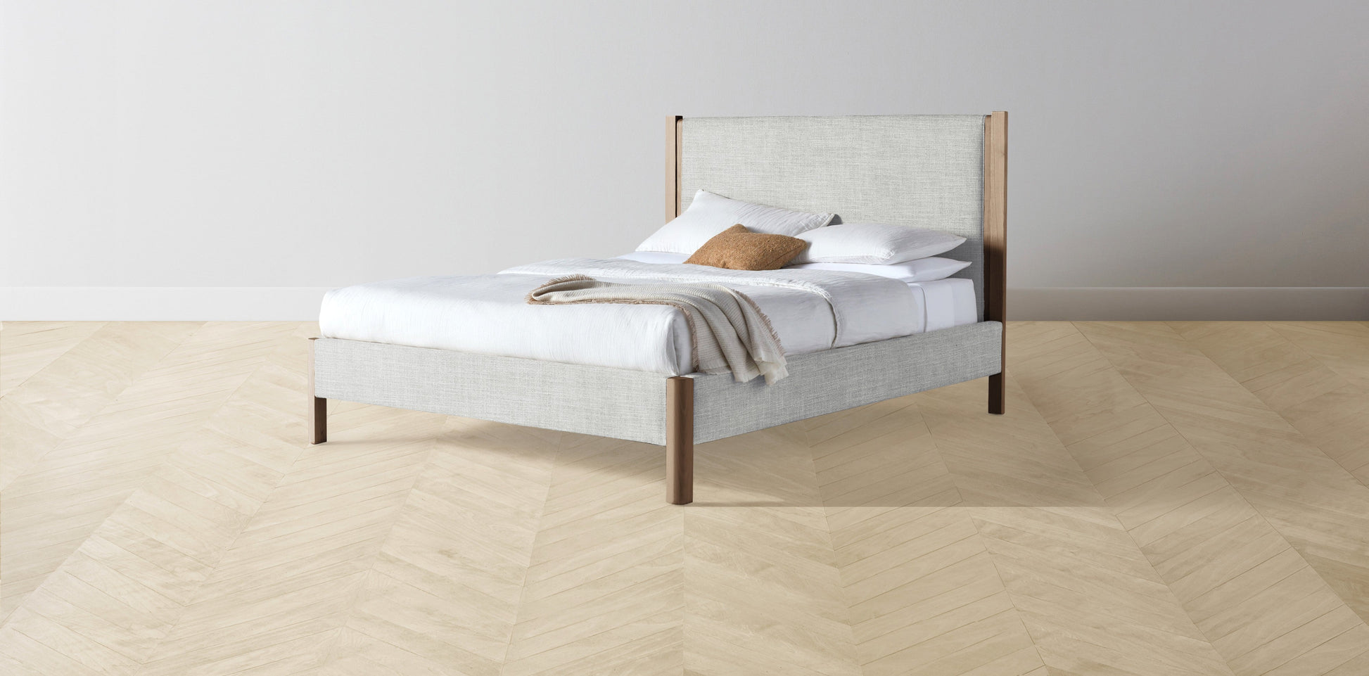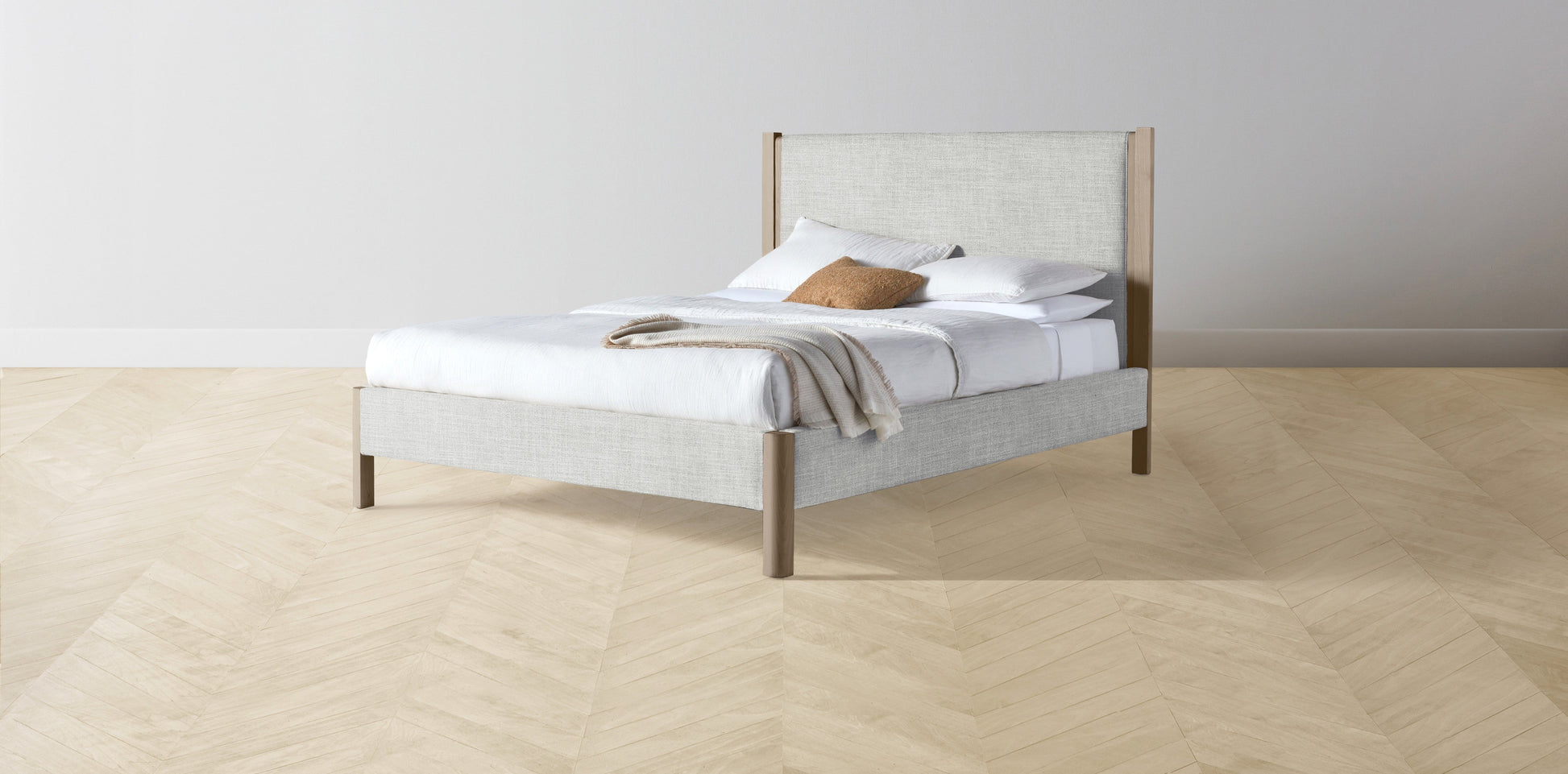 The Thompson - Performance Textured Tweed Dove Bed - 48" Headboard - Muslin on reverse