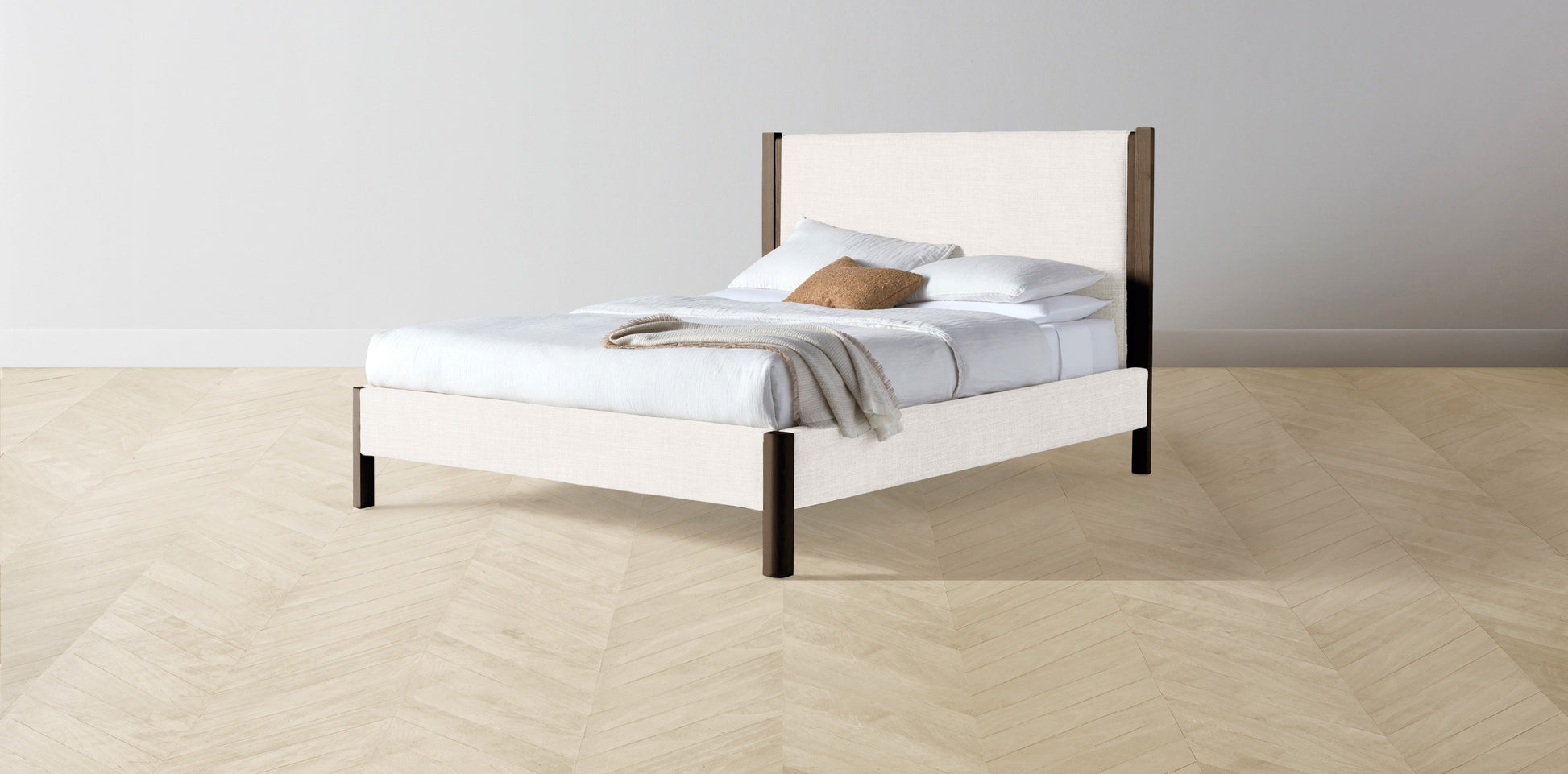 The Thompson - Performance Textured Tweed Snow Bed - 48" Headboard - Muslin on reverse