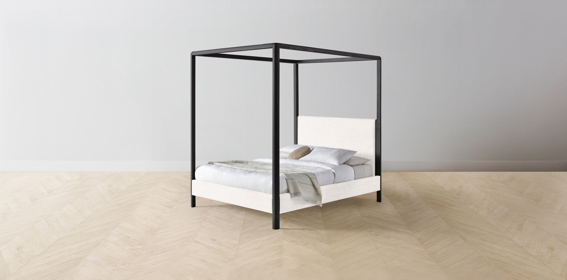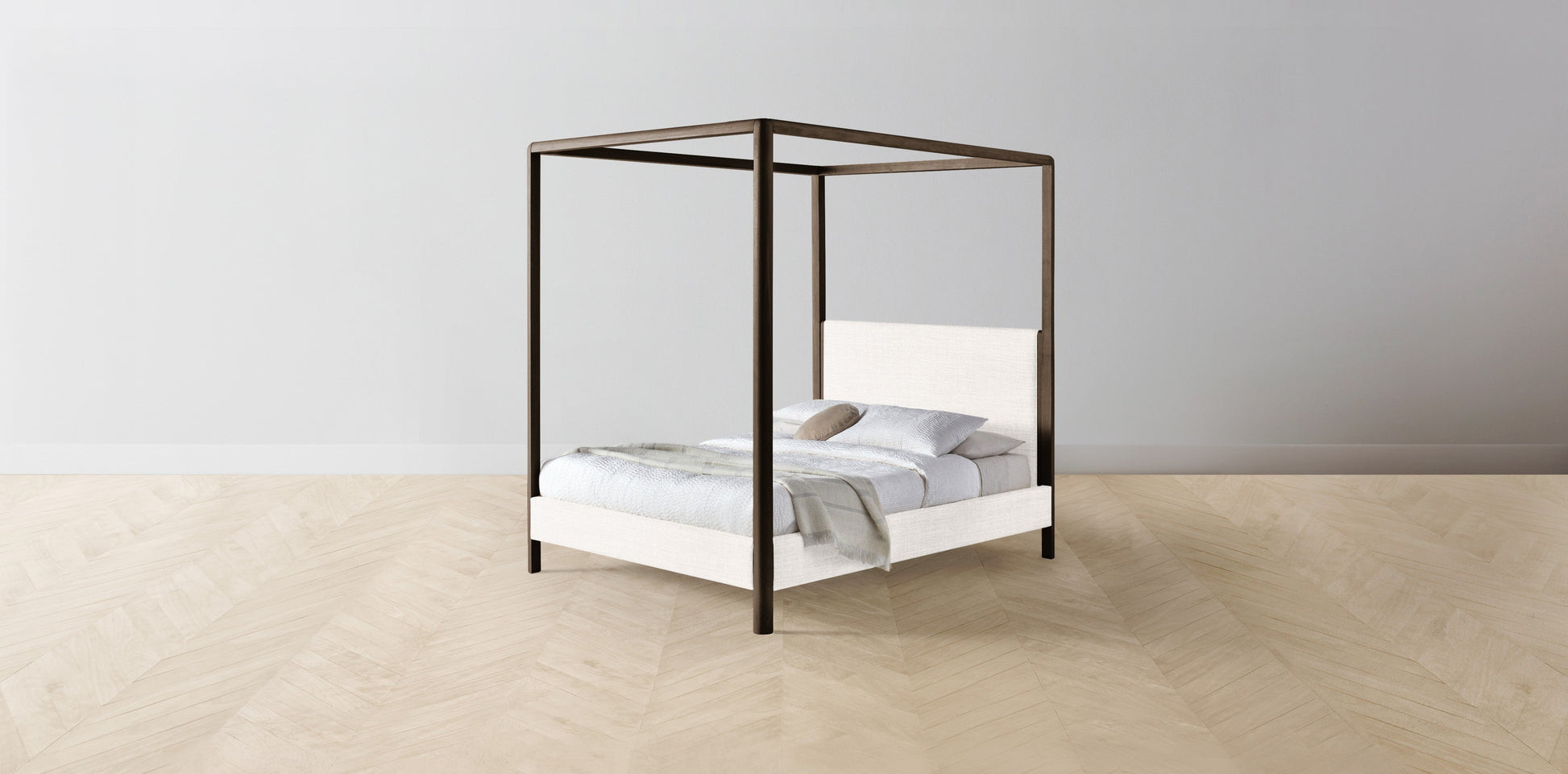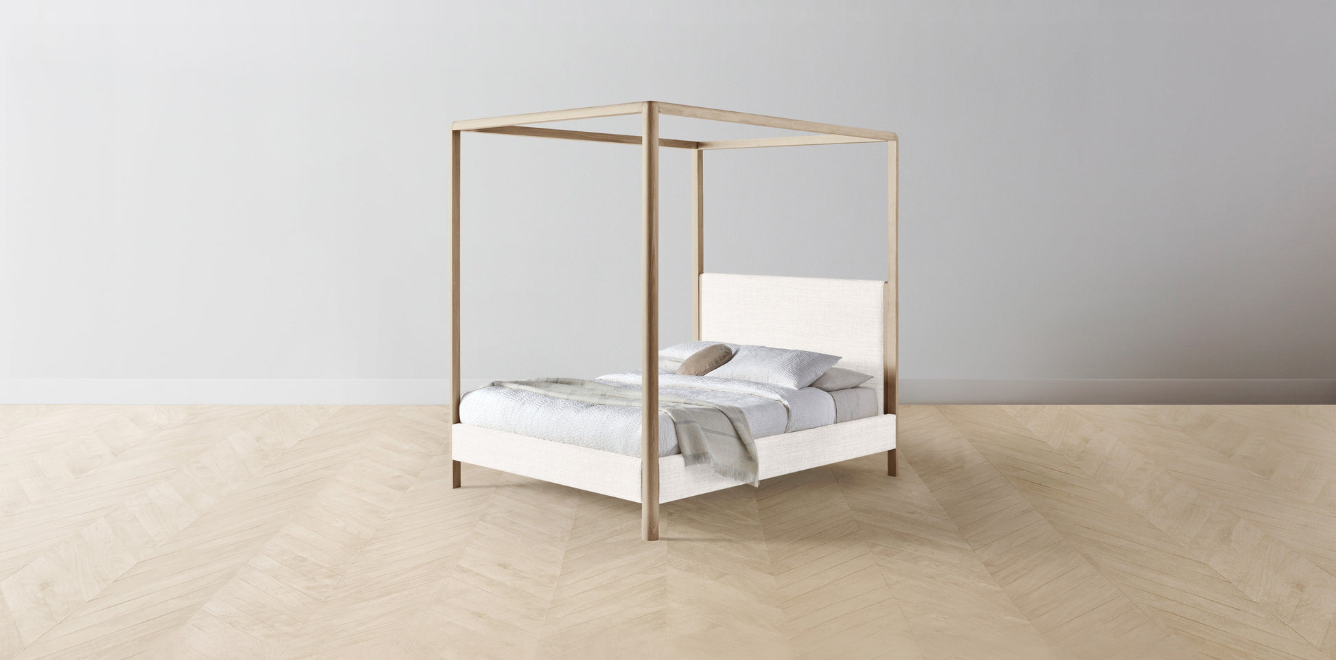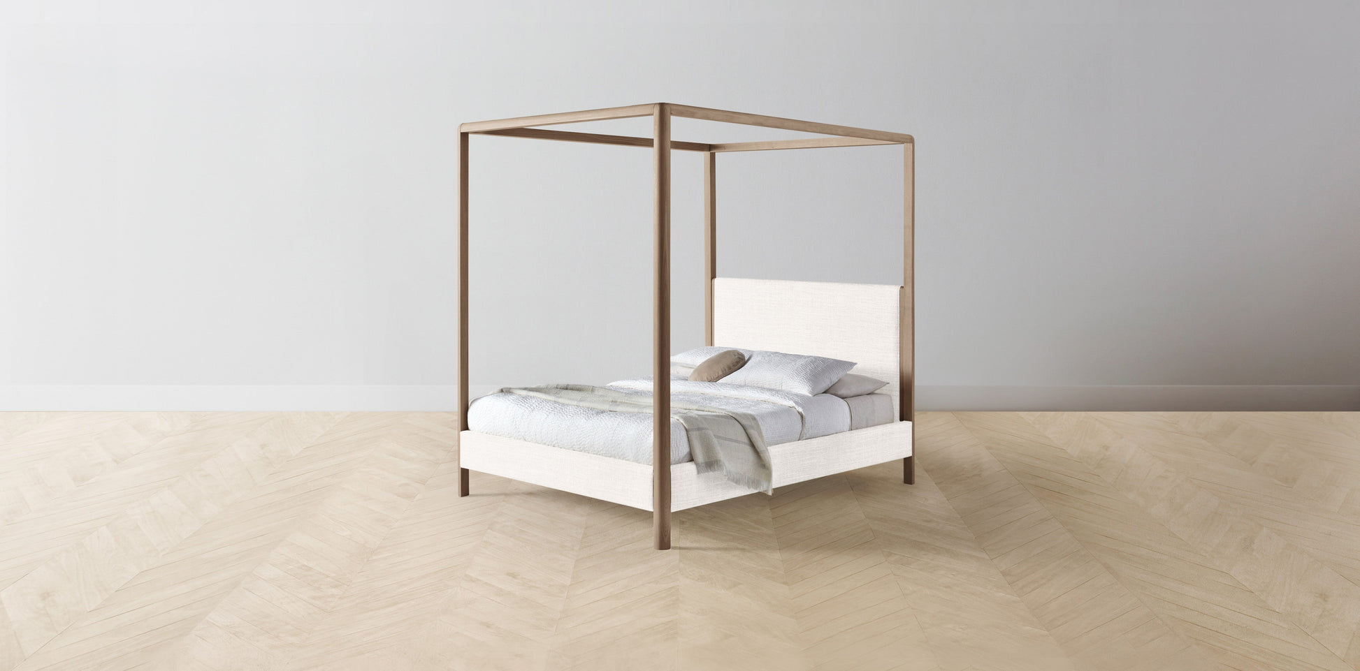 The Thompson - Performance Textured Tweed Snow Canopy Bed - 48" Headboard - Upholstered on reverse