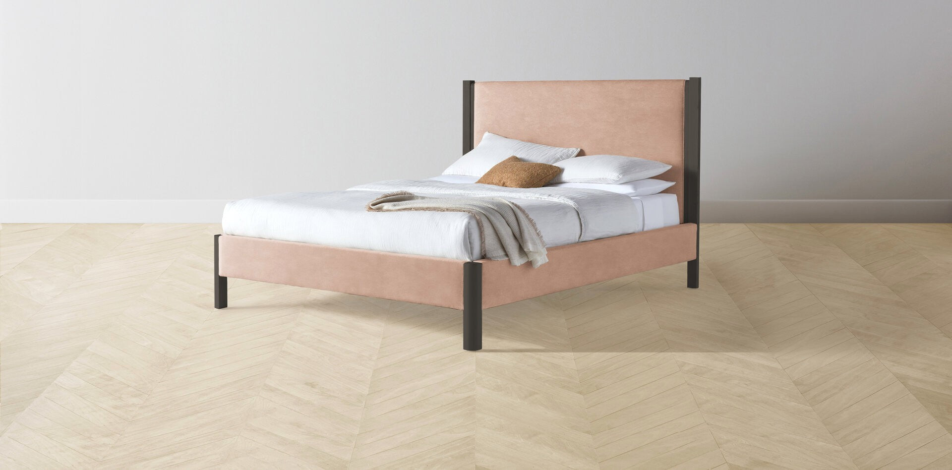 The Thompson - Performance Velvet Dusty Rose Bed - 48" Headboard - Upholstered on reverse