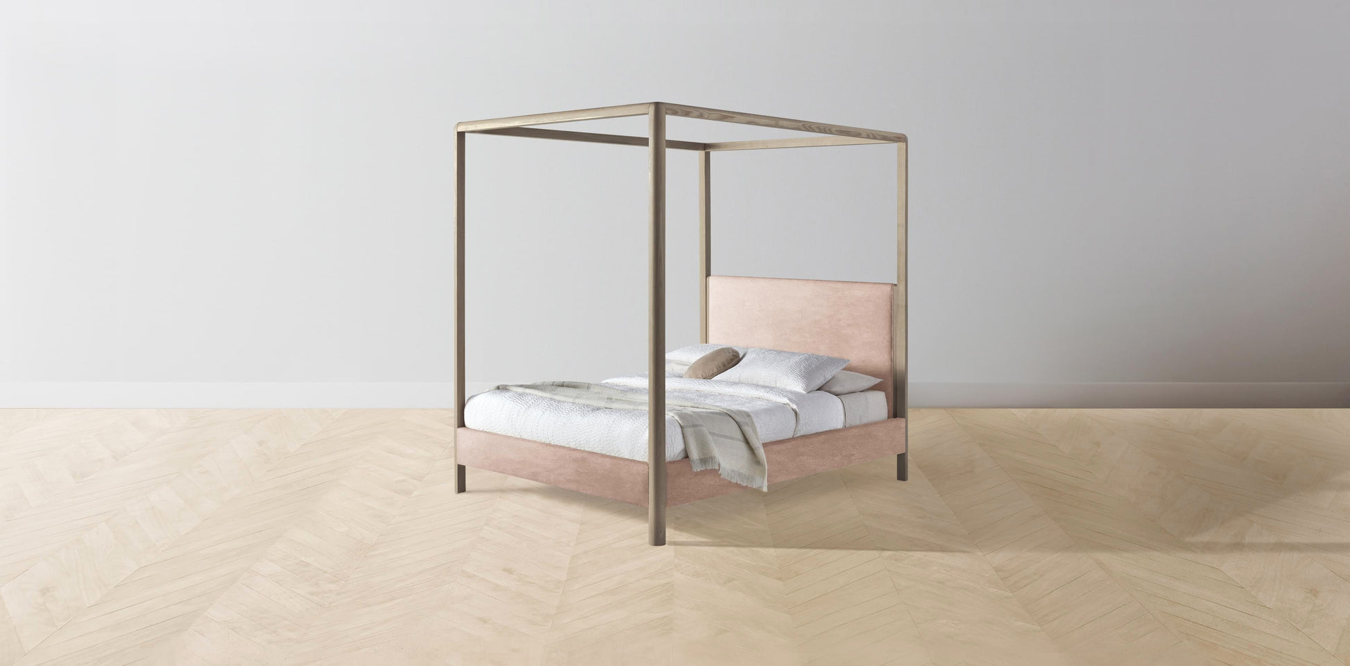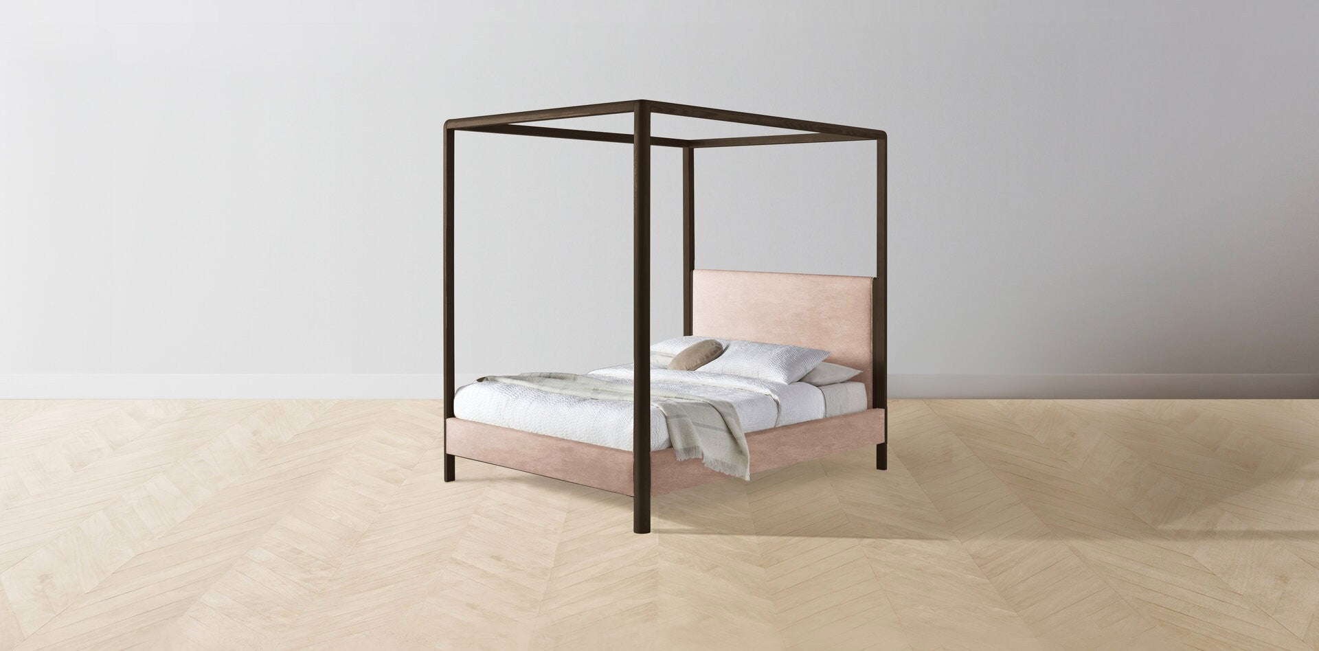 The Thompson - Performance Velvet Dusty Rose Canopy Bed - 48" Headboard - Muslin on reverse
